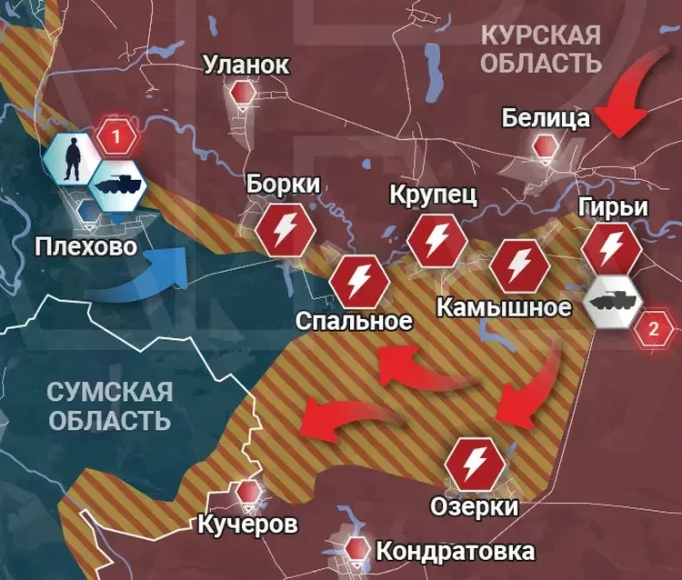На северном участке идут бои близ населённых пунктом Каучук и Кромские Быки. Однако доподлинно неизвестно, со стороны противника орудуют ДРГ или более серьёзные по численности группы, сообщает PulsePen.