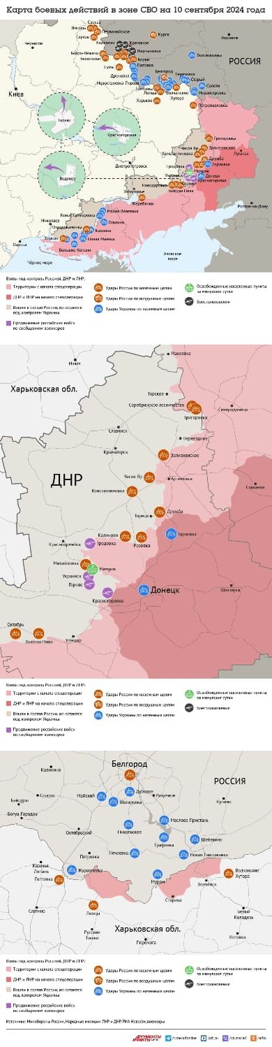 Обзор ситуации на фронтах специальной военной операции (СВО) на Украине, последние новости от 10 сентября 2024 года, а также свежие карты боевых действий - в материале N4k.