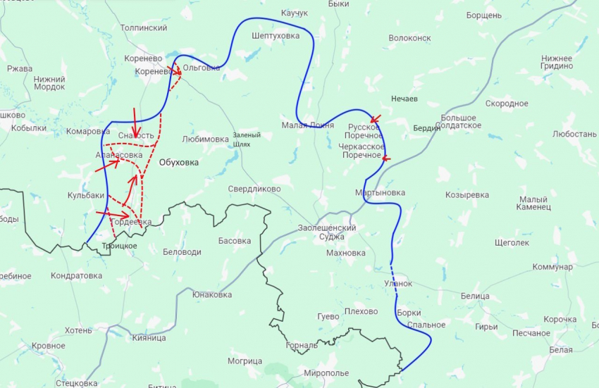 К утру в целом наши части все эти территории зачистили (хотя есть еще очаги, но это уже неопасно для дальнейшего движения вперед), а наши войска вышли на линию дальнейшей атаки опираясь на линию. Снагость-Апанасьевку-Бяхово-Гордеевку.