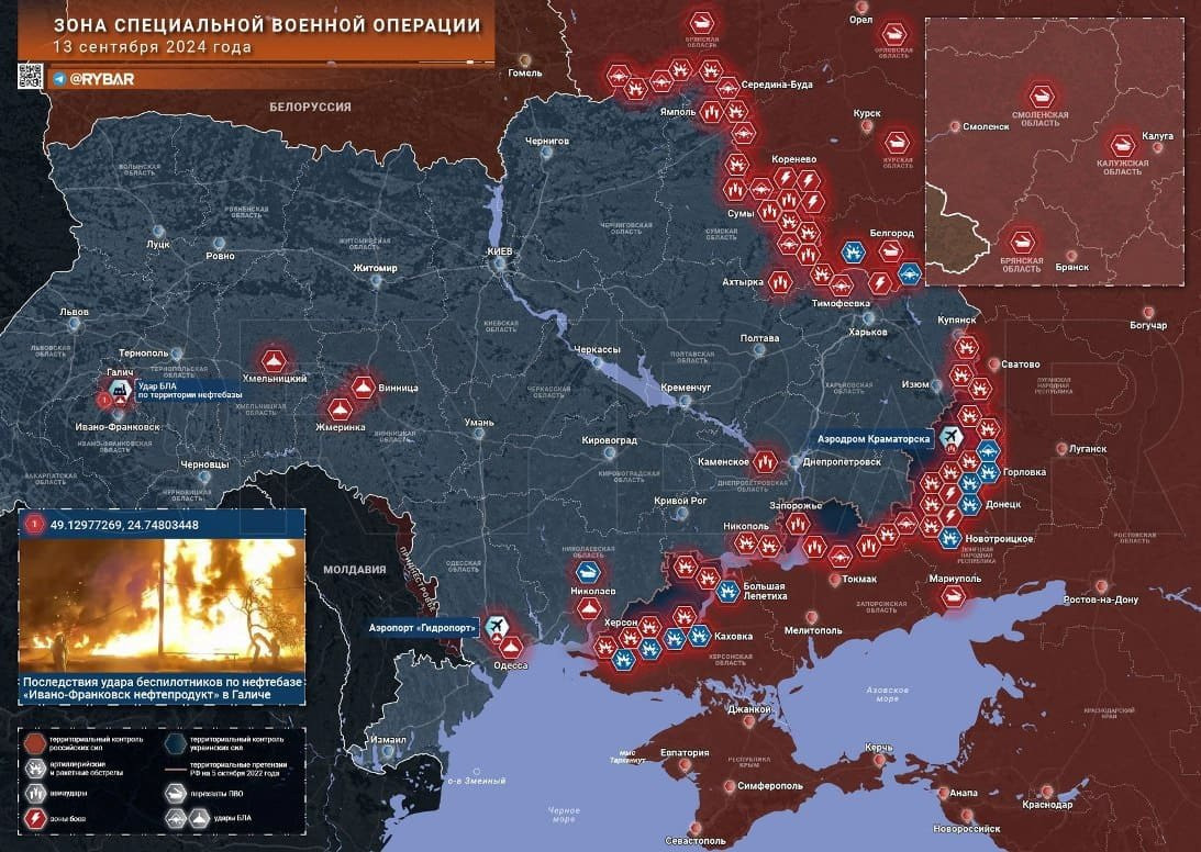 Свежая карта боевых действий на Украине. ВС РФ наступают. Обстановка на фронтах СВО на 14.09.2024