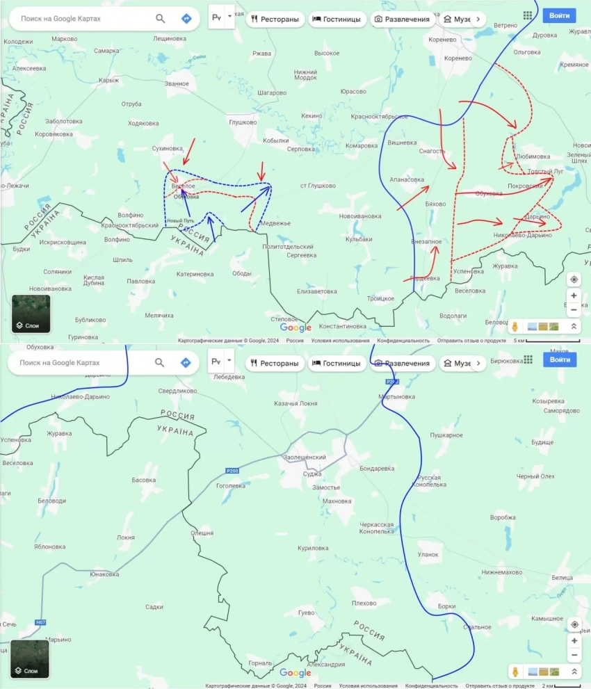 По Глушковскому району Курской области поступает противоречивая информация. Точно известно, что ВСУ уже несколько дней пытаются прорваться через госграницу Российской Федерации в районе населённых пунктов Новый Путь (по направлению к Весёлому) и в районе Медвежьего (по направлению к посёлку железнодорожной станции Глушково).
