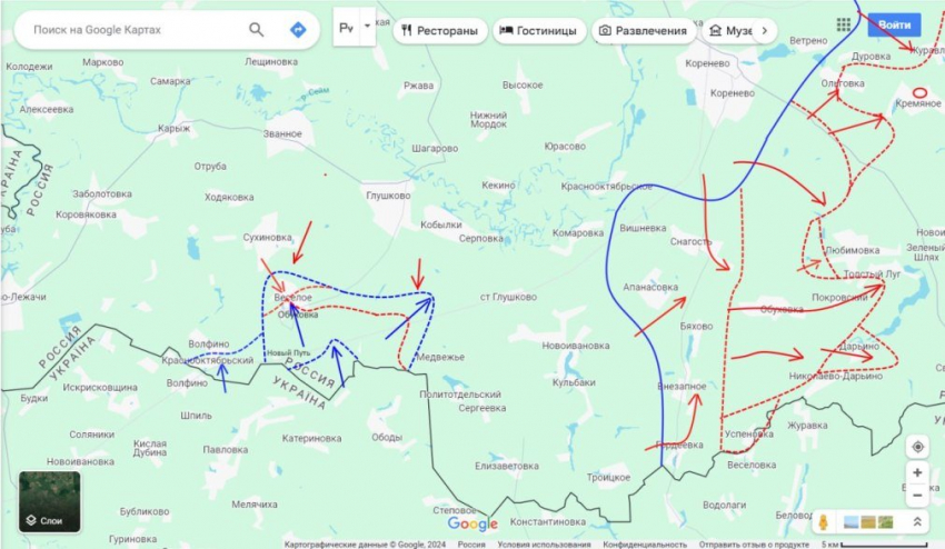 Судя по конфигурации своих резервов, именно Суджу противник намерен держать до конца. А вот остальными своими «завоеваниями» здесь, в случае новых наших ударов он вполне готов пожертвовать.
