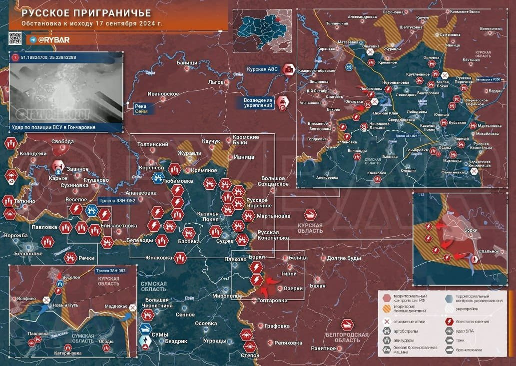 Свежая карта боевых действий в Курской области от 18.09.2024. Ожесточенные бои идут в Кореневском районе. Обстановка в приграничье на сегодня
