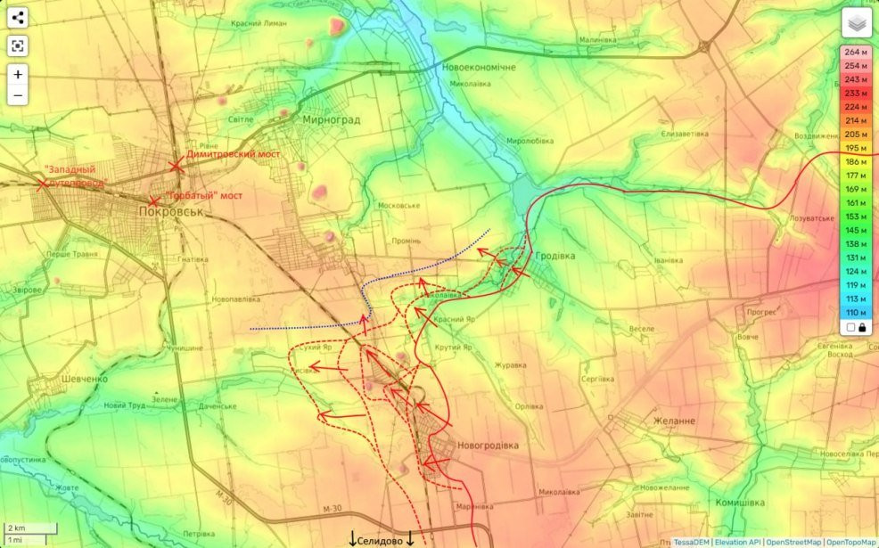 Также хочу обратить внимание, что наши части продолжают бить по мостовой инфраструктуре Покровска-Мирнограда, и вчера таки добили «западный путепровод» (с третьей попытки, первые две только повреждали этот мост). ЖД сообщение города с остальным «миром» таким образом временно перерезано (минимум на несколько дней), чему наше военное командование, похоже, придает в разворачивающейся битве, особое значение.