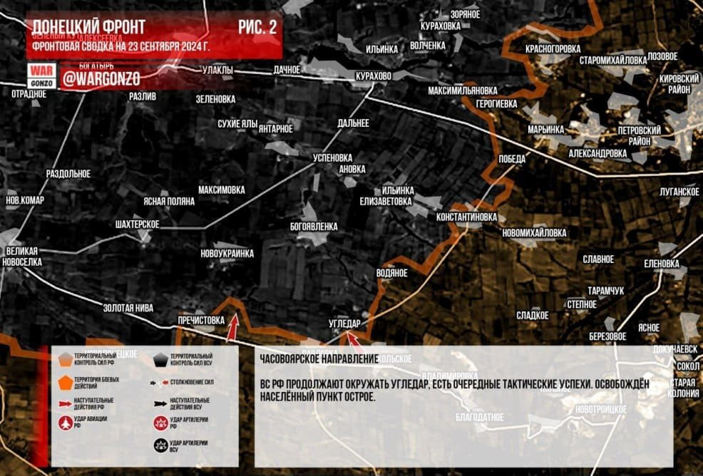 Свежие новости СВО на 23.09.2024. Карта боевых действий на Украине, ВС РФ продвигаются на ряде участков