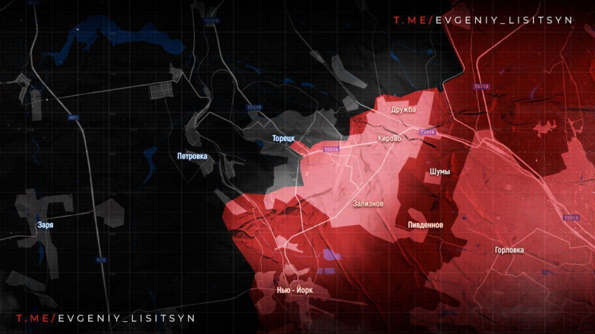 На Торецком направлении продолжаются городские бои в центре Торецка и вокруг него. Подтвердился контроль над точкой в южном части города - деревне Нахаловка, через которую пролегает путь на микрорайон Забалка, сообщает в Telegram-канале военкор Евгений Лисицын.