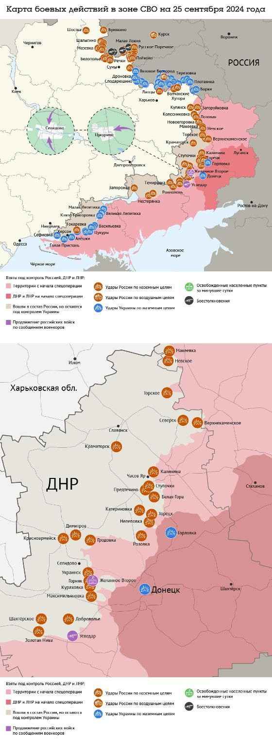 Последние новости СВО на 25 сентября 2024. Карта боевых действий на Украине на сегодня, военная сводка