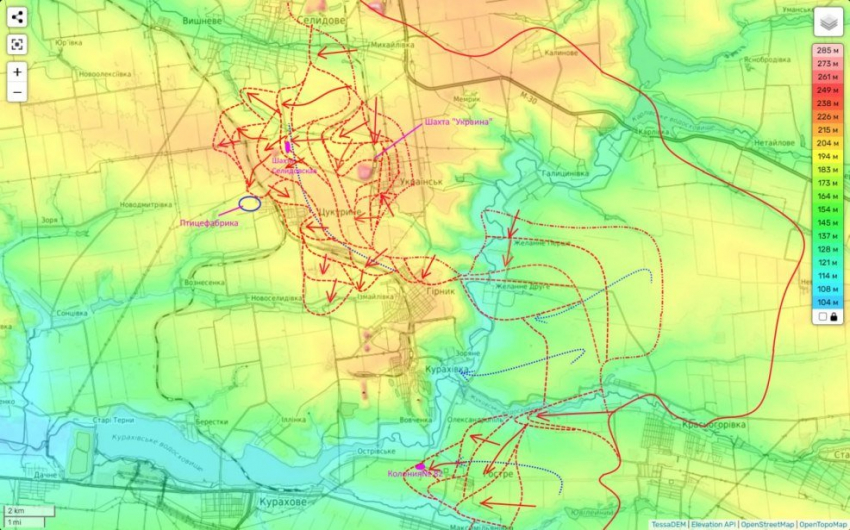 Обстановка на Селидово-Кураховском направлении: карта