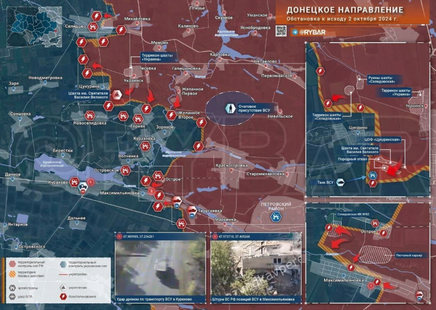 На Донецком направлении российские войска овладели шахтой и терриконом к югу от Цукурино, практически охватив населенный пункт с флангов.