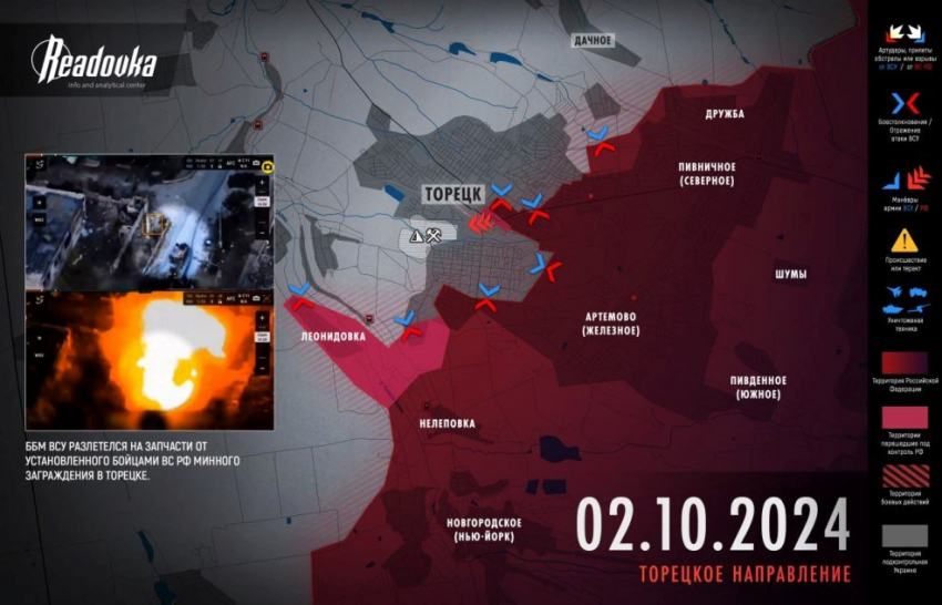 Как передает Telegram-канал Readovka, пока командование ВСУ признавали сдачу Угледара под благим предлогом, ключевые события происходят в самом сердце Торецка. Выгнав врага из квартала многоэтажек в районе улиц Маяковского и Дружбы, армия России разворачивает силы для занятия комплекса шахты «Новая» и ее высот.