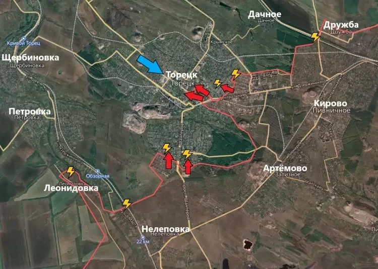 На Торецком направлении подразделения ВС РФ немного расширили зону контроля в центре Торецка (Дзержинска). Командование ВСУ продолжает перебрасывать резервы в город, чтобы замедлить продвижение Армии России.