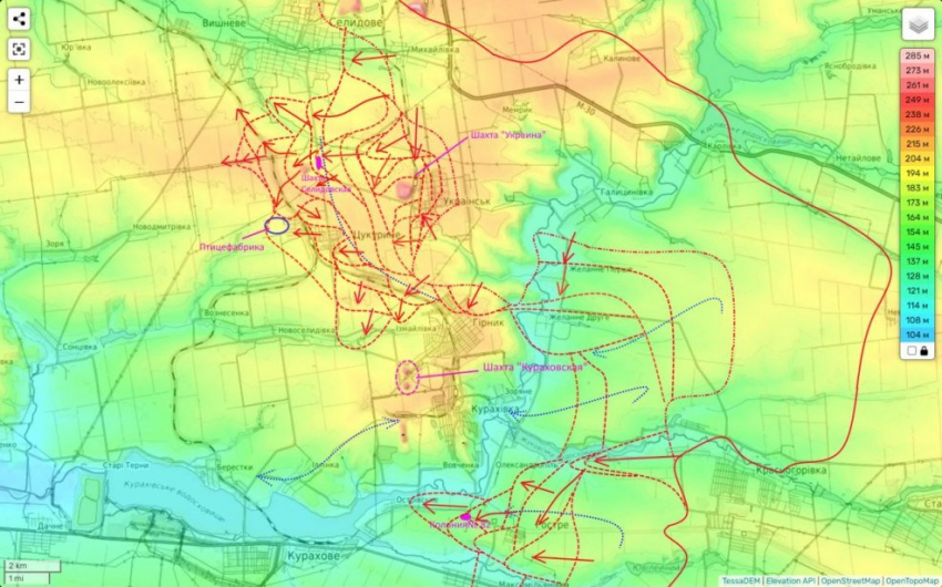 Селидово-Кураховское и Угледарское направления на карте