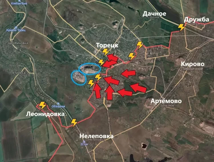 На Торецком направлении, как следует сразу из несколько крупных источников, ВС РФ взяли под контроль южный район Торецка (Дзержинска) - Забалку, а также лесной массив восточнее Забалки. Сейчас бои идут за подходы к двум крупнейшим терриконам Торецка (на северо-западе Забалки). В центре города штурмовые группы вошли на территорию шахты «Центральная» и Центральной обогатительной фабрики «Дзержинская».