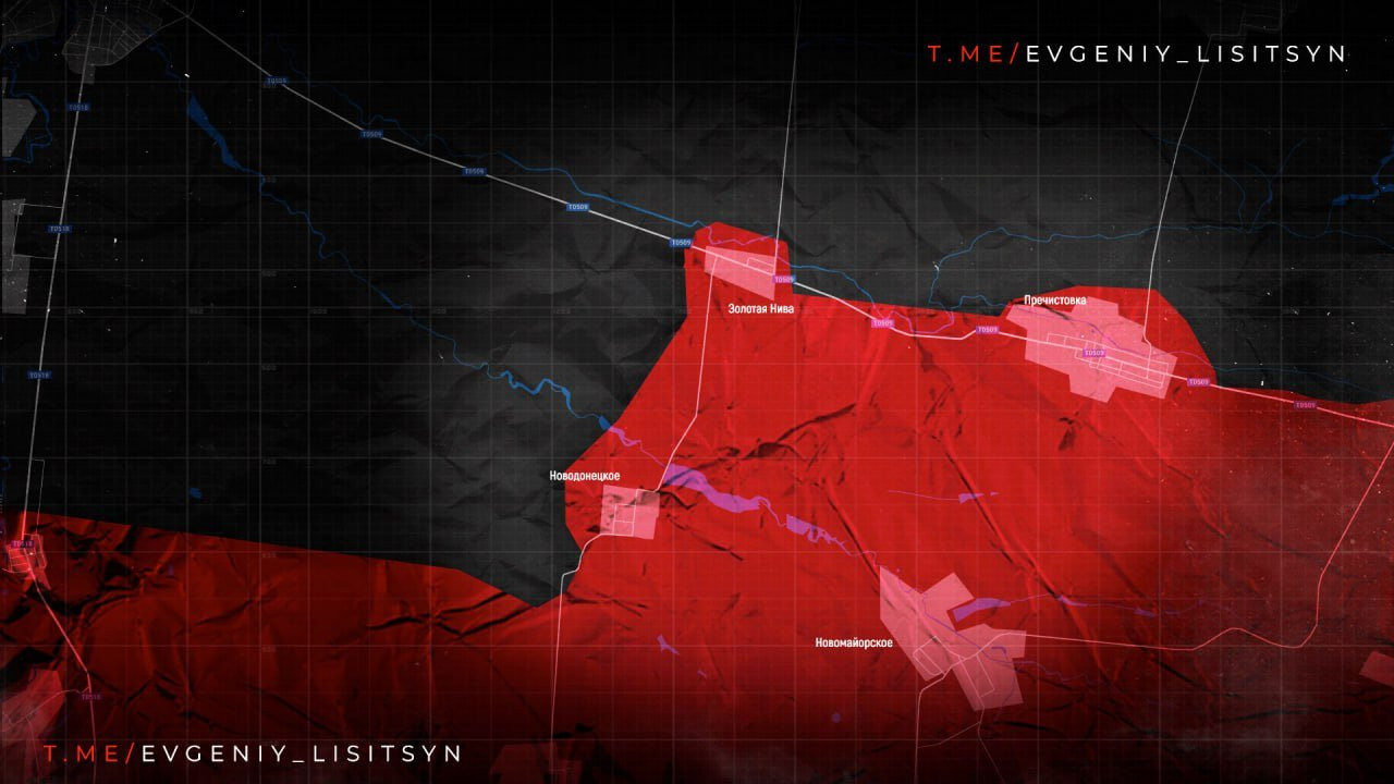 На Покровском направлении сообщают об освобождении села Зоряное, что к югу от Новожеланного Второго. Это означает охват с востока Горняка и Кураховки.