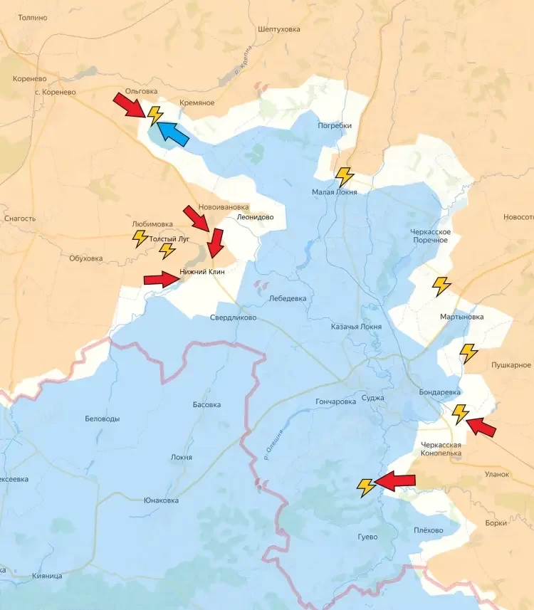 Ожесточенные боевые действия в Курской области не смолкают. ВСУ зачем-то атаковал в районе Ольговки, которую не так давно оставили. Помимо этого, на данном участке ВСУ контролируют довольно узкий кусок территории, что в любой момент может привести к окружению группировки ВСУ.