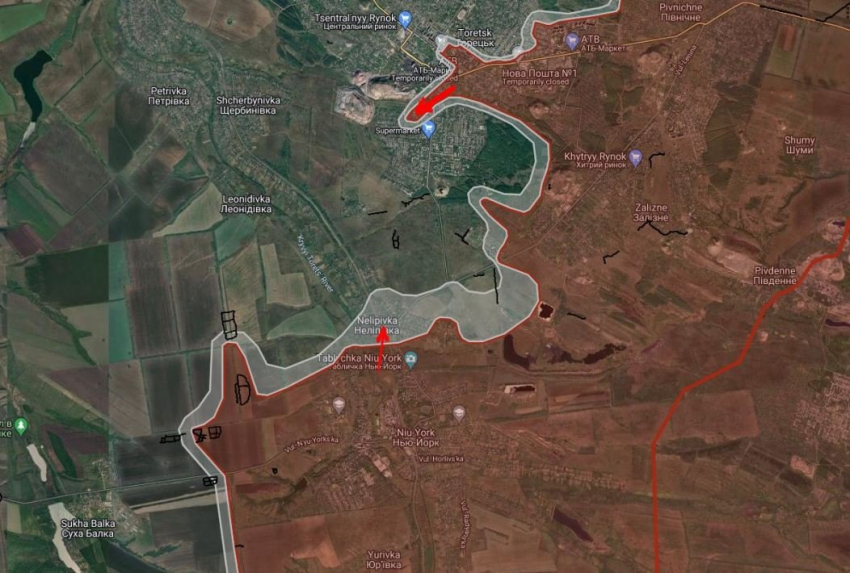 На Торецком направлении российские войска продолжают штурмовые действия в Торецке и в районе Нью-Йорка (Новгородское).