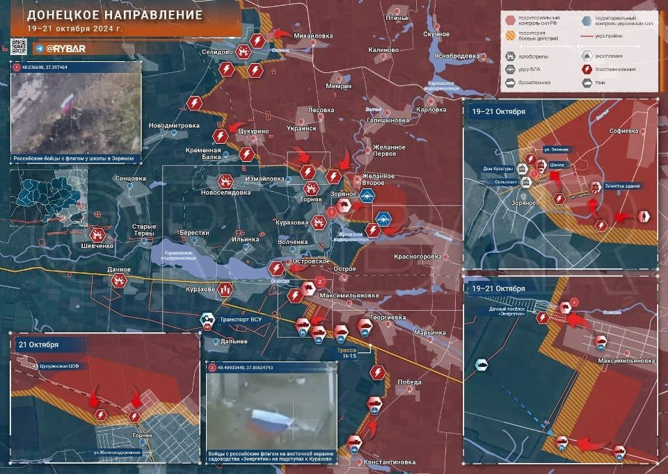 На Донецком направлении российские войска ведут бои в Горняке и Зоряном, а также продвигаются в направлении Курахово и вдоль трассы Н-15 южнее Максимильяновки.