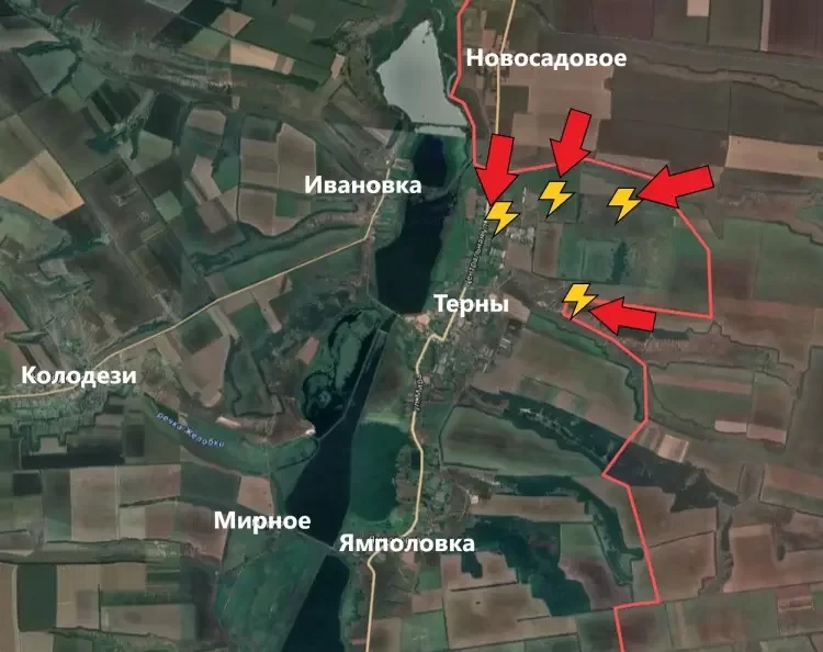 На Лиманском направлении штурмовые подразделения ВС РФ зашли на северные окраины населённого пункта Терны со стороны Новосадового. В селе завязались бои, результат которых пока что неизвестен. Очень долго ВСУ удерживали здесь оборону. Будем надеяться, что атака с севера станет более результативной, чем множество попыток с востока ранее.