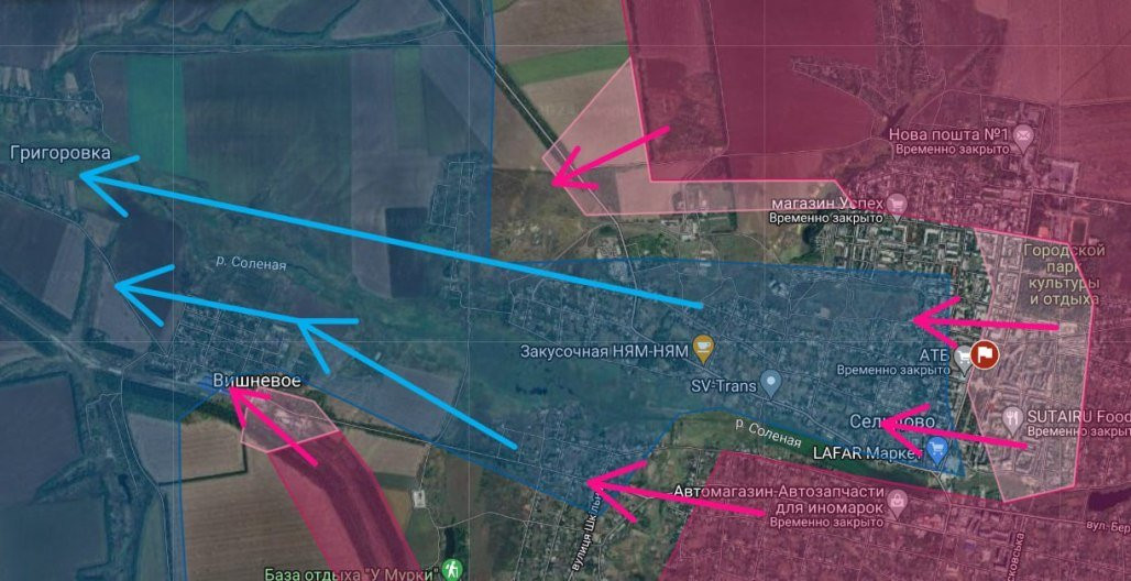 По данным украинских военных аналитиков, Вооруженные силы Российской Федерации активно продвигаются в окрестностях населенного пункта, взяв под свой контроль участок шириной до 3,6 км и глубиной до 2 км. Там продолжаются активные боевые действия.