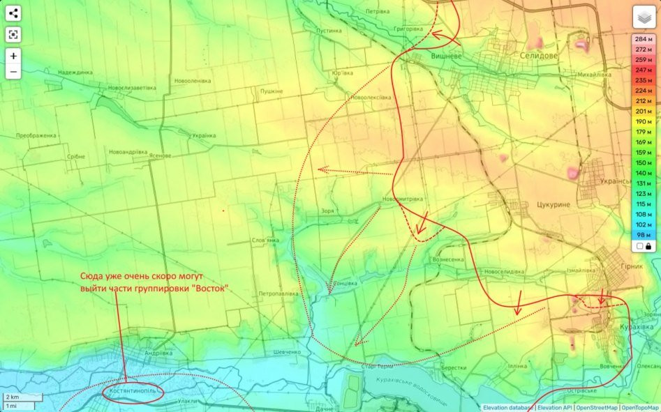 А еще мы продолжаем преследовать части ВСУ за Селидово на запад и подходим к Грирорьевке.