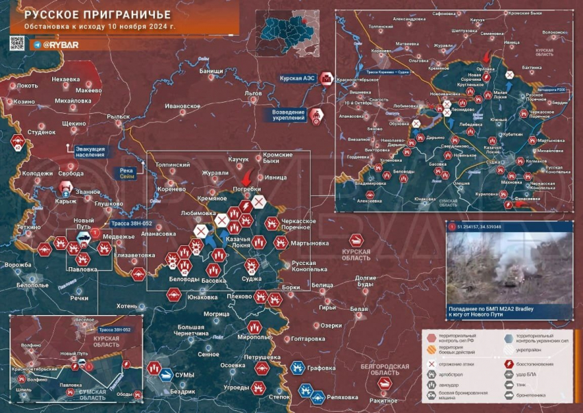 Новая карта боевых действий в Курской области по данным на 11.11.2024