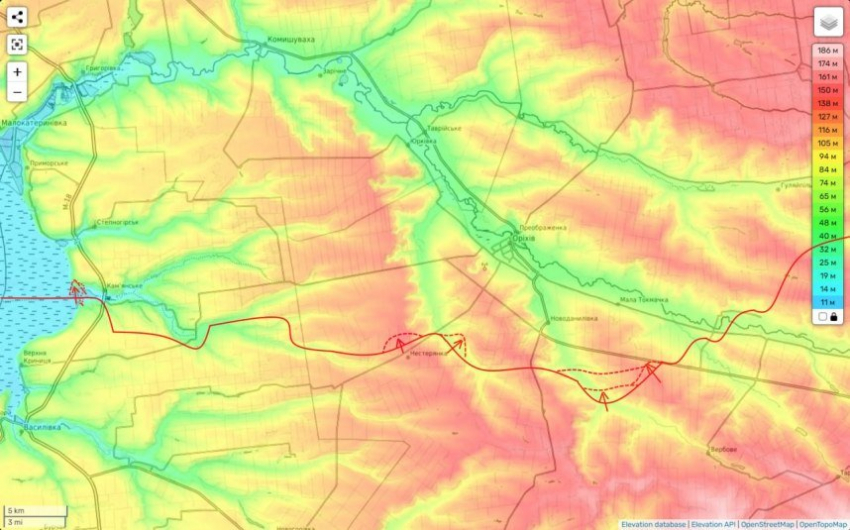 Он уточнил, что крупнейшее шоссе в этом районе проходит вдоль дамбы, а рядом находятся поля и сельские дороги, которые не смогут пропустить большие объемы войск и техники.