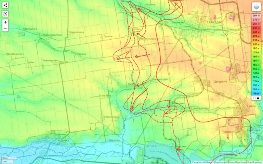 Западнее Селидово, мы начали бои за н.п. Пустынка, который расположен чуть северо-западнее ранее освобожденной Юрьевки. Занятие данного рубежа позволит нам подтянуть фланг клина, который мы ранее вбили в районе южнее Новоалексеевки. Чтобы таким образом подготовить условия для дальнейшего движения здесь вперед.