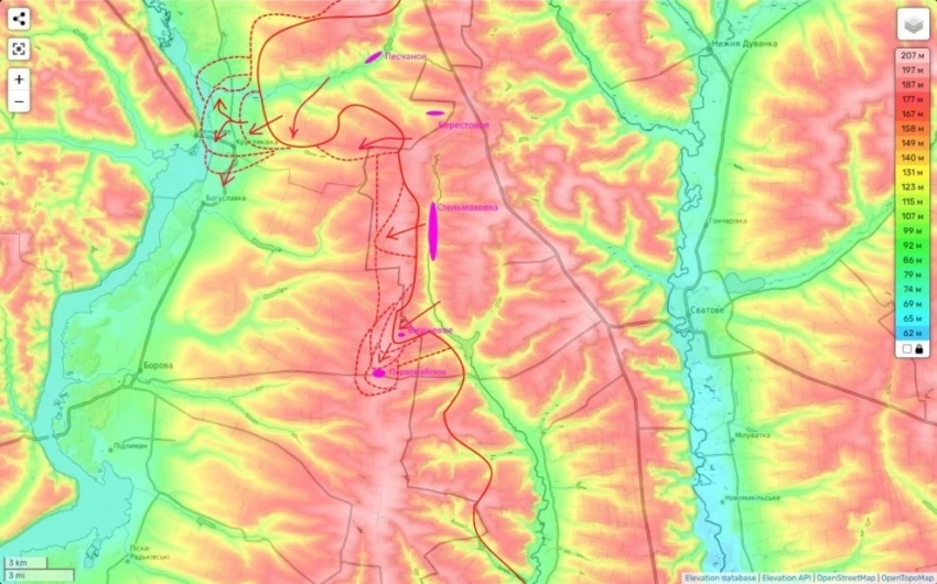 Они постепенно берут под контроль часть трассы из Сватово в Боровую, восточнее Первомайского. А еще продолжают расширять свой контроль над прилегающими водораздельными холмами.