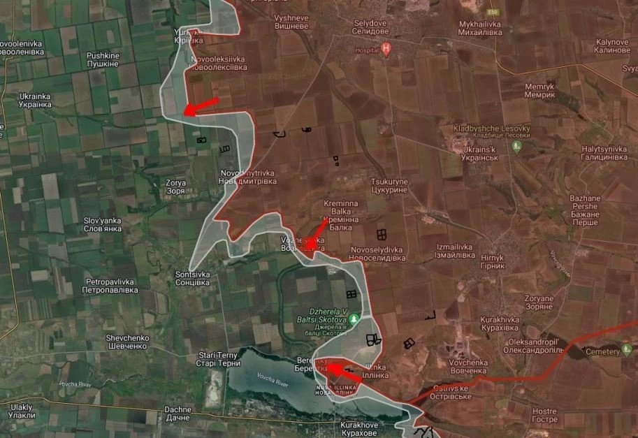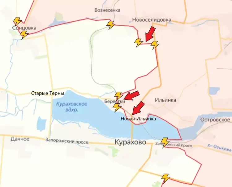 На Покровском направлении севернее Зари на российские войска продвинулись на участке до 1 км. ВС РФ расширили контроль территории южнее Вознесенки. На северном берегу Кураховского водохранилища под контроль российских войск перешла Новая Ильинка, ВС РФ давят в направлении Берестки.
