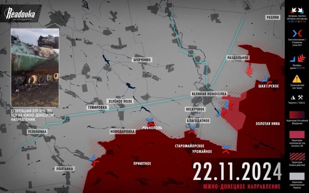 ВС России закрепляют успехи и освобождают новые населённые пункты в Донбассе: карта боевых действий на 23.11.2024