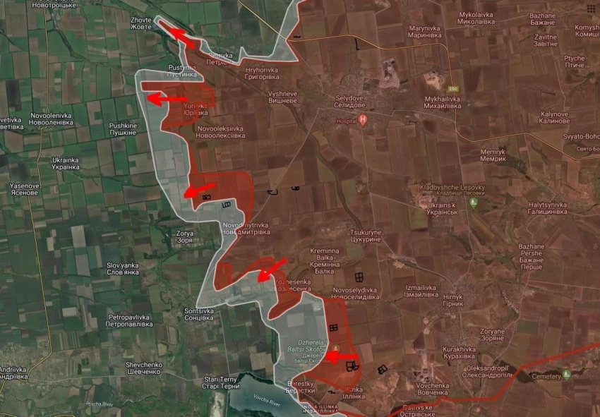 Восточнее Великой Новосёлки российские войска закрепились на участке шириной до 4.25 км на глубину до 3.28 км.