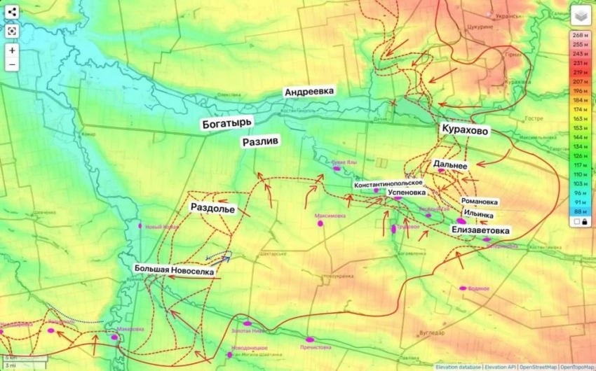 Недалеко отсюда освобождено Раздольное, от которого наши штурмовики могут стартануть на Андреевку, Разлив и Богатырь. Таким образом, речь уже не идет лишь об освобождении всей территории Донецкой Народной Республики, от Курахово армия России сможет начать освобождать Запорожье и даже Днепропетровскую область.