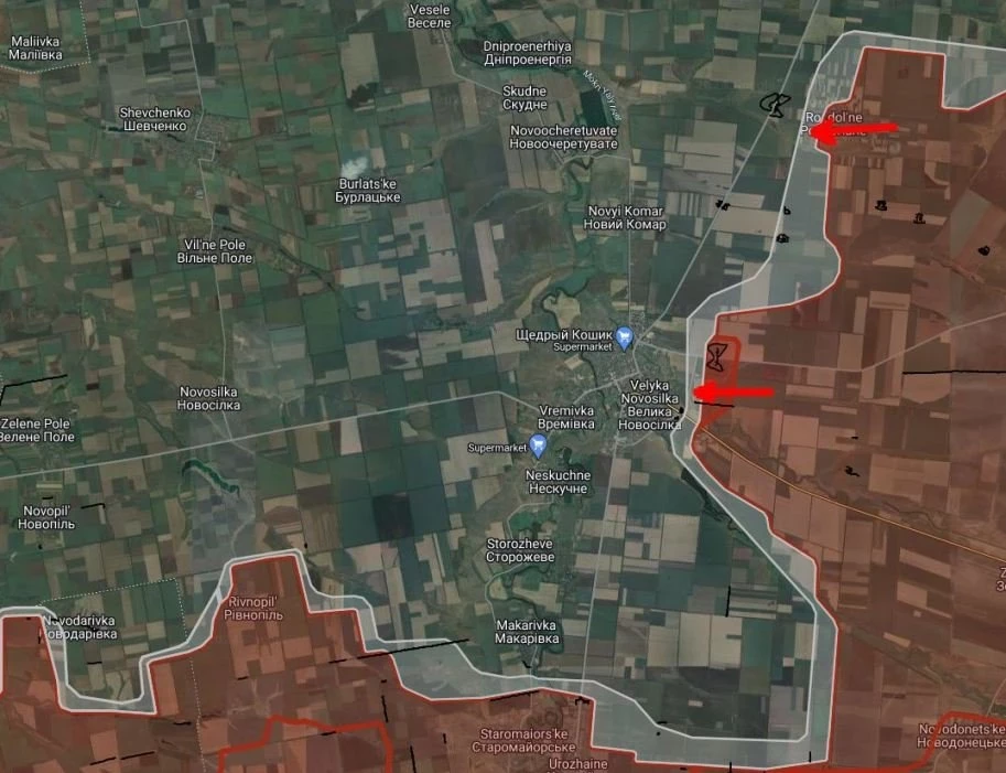 На Времевском направлении восточнее Великой Новосёлки ВС РФ расширили контроль территории и продвинулись на участке шириной до 2.25 км.