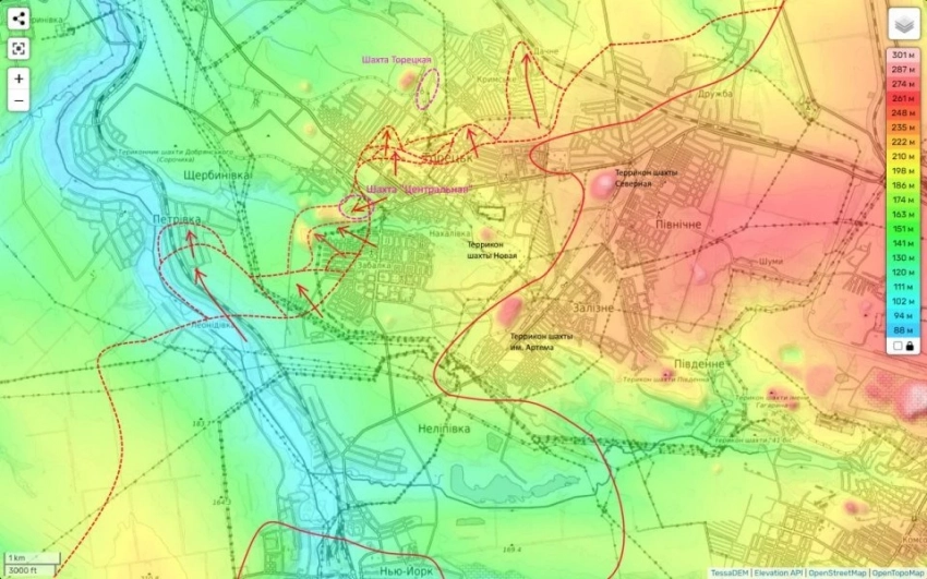Также наши часты атакуют западнее. В районе Леонидовки. Противник пока удерживает здесь свои позиции.