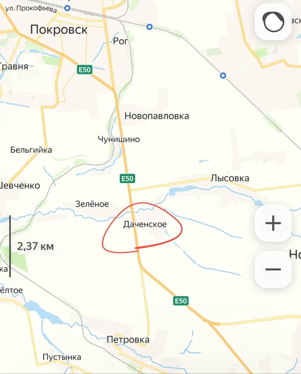 По его данным, село расположено на юго-востоке Покровска на одной из ключевых трасс. Министерство обороны России не комментировало эту информацию.