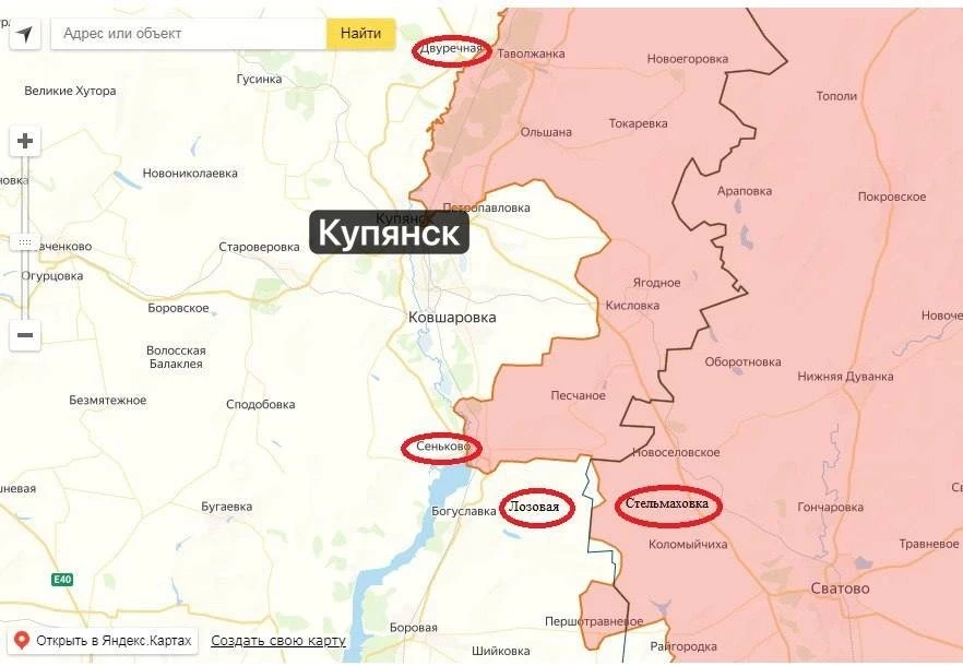 По его информации, наши уже зашли в село Двуречная, идут ожесточенные бои. Не менее напряженная обстановка на юге Купянского направления. Здесь бои идут возле деревни Лозовой Харьковской области. Также было представлено видео, на котором целый моторизованный взвод пытается зайти в тыл к нашим подразделениям.