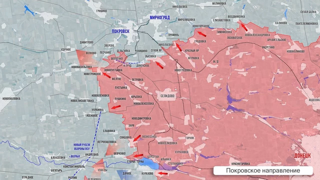 На Покровском фронте армия России буквально разламывает линию обороны врага южнее Покровска. В районе Волково и Соленого бои сместились внутрь этих н.п. Их освобождение позволит обойти с тыла Песчаное и Зверево, а также выйти к трассе на Покровское к с. Удачное и Котлино. Восточнее есть успехи в районе Даченского и продвижение к станции Чунишино. Упорные бои продолжаются в Новооленовке и Украинке.