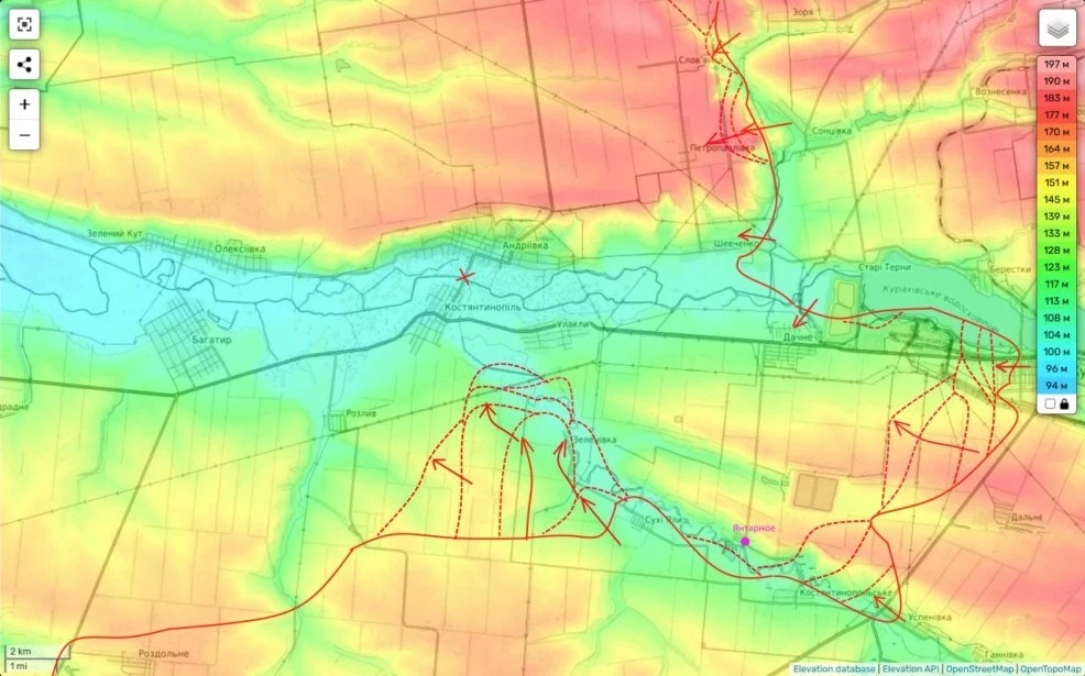 Между тем, занятие этих опорников несет для частей ВСУ в Большой Новосёлке массу серьёзных вызовов. Дело в том, что следующая хорошо оборудованная линия обороны противника находится довольно далеко на север и уже прикрывает не этот населённый пункт, а выход в Днепропетровскую область.