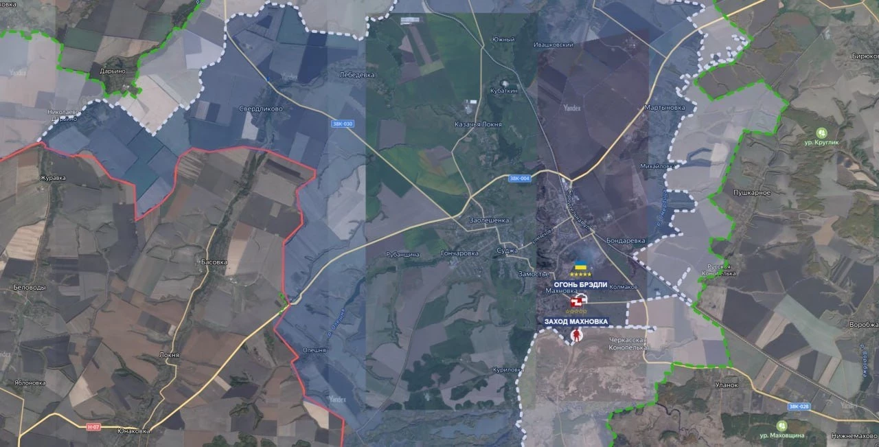 По данным журналистов, «северяне» продвинулись в лесополосе Суджанского района. Канал отмечает, что российские военные прорвали оборону ВСУ возле села Махновка в трёх километрах от Суджи, сейчас идут бои за населённый пункт. Военкоры пишут, что туда стягиваются техника и резервы.