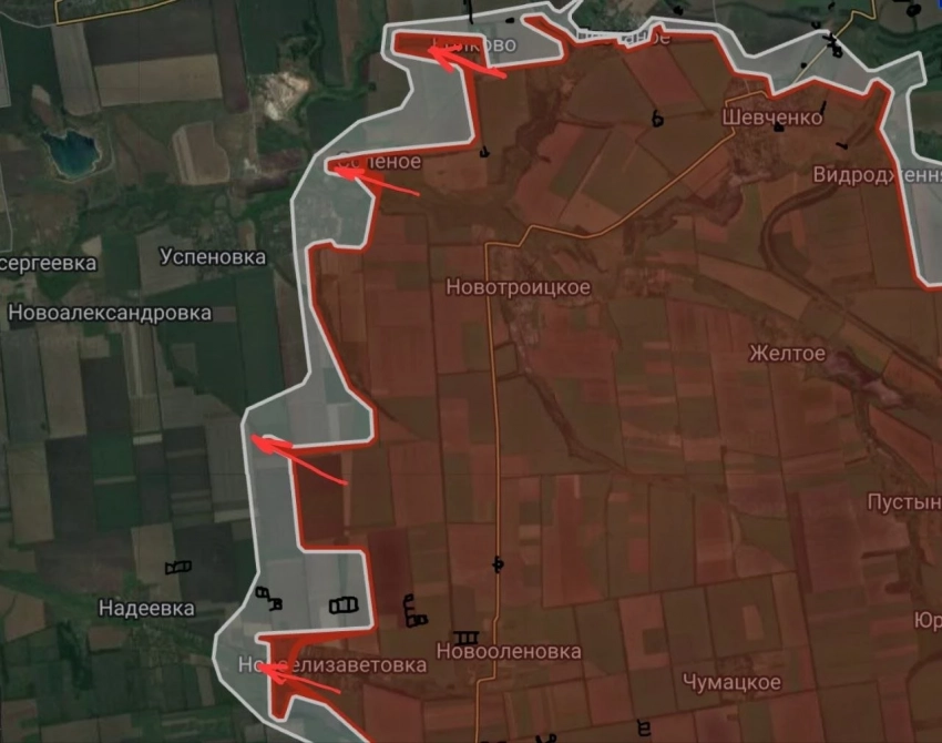 На Покровском (Красноармейском) направлении наши войска атакуют в районе Нововасилевки (юго-западнее Покровска). К югу от города ВС России выравнивают фронт у н.п. Зелёное. Восточнее сообщают о продвижении российских подразделений у Воздвиженки, где до до важной логистической развязки трассы Покровск - Константиновка остаётся около 4 км. Об этом пишет Telegram-канал "Два майора".