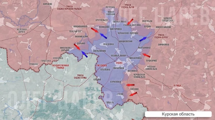 Ещё одна точка напряжения - южнее Суджи, где, как сообщают, наши взяли под контроль Махновку и начали штурм Замостья.