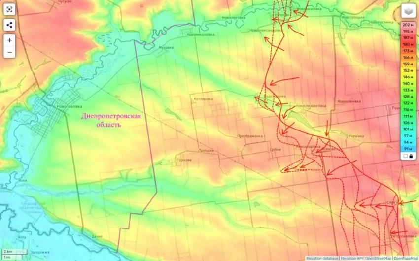 Наши части, после вчерашнего схлопывания обороны ВСУ внутри мешка в районе реки Сухие Ялы усилили, давление на н.п. Дачное.