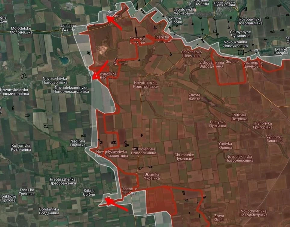На Великоновосёлковском направлении российские войска продвинулись в восточной и юго-восточной частях Великой Новосёлки, продолжаются встречные бои.
