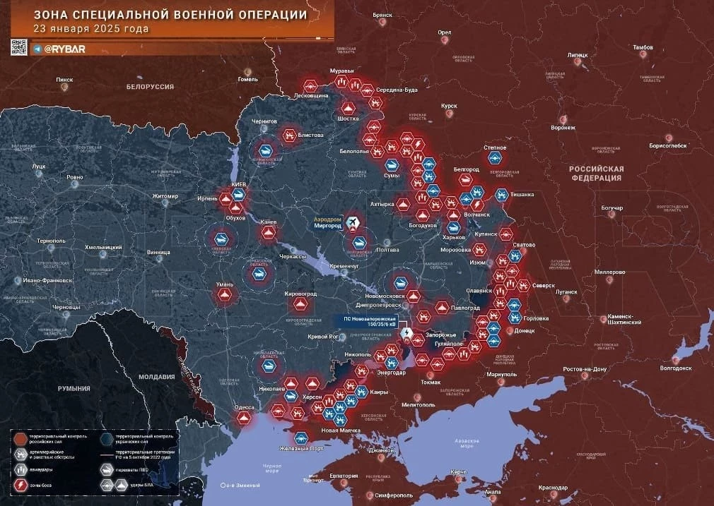 Новая карта боевых действий в зоне СВО на Украине на 24.01.2025