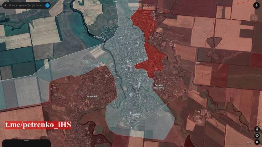 На Великоновосёлковском направлении российские войска расширили контроль территории севернее р. Кашлагач и продвинулись в центральной части Великой Новоселки на глубину до 600 м.