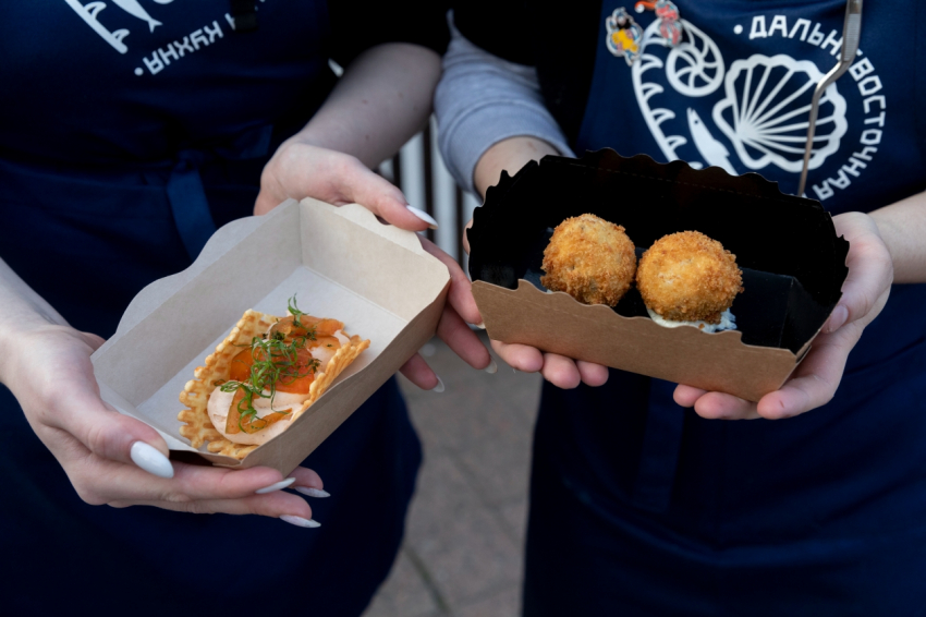 В течение всех четырёх дней фестиваля на набережной Спортивной гавани для гостей работал фудкорт “Вкус Дальнего Востока” с участием 25 кафе и ресторанов Приморья, Бурятии и Камчатки. Каждый из них представлял гостям уличные версии дальневосточных блюд из действующего меню их заведений и блюда из минтая, разработанные специально для фестиваля.