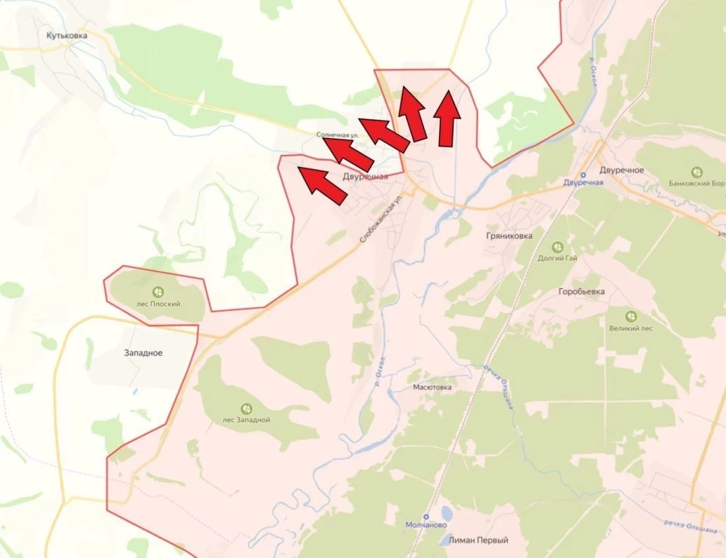 На Красноармейском направлении российские военнослужащие пытаются пытаются развить свой успех из района Котлино и в районе н.п. Зверево.