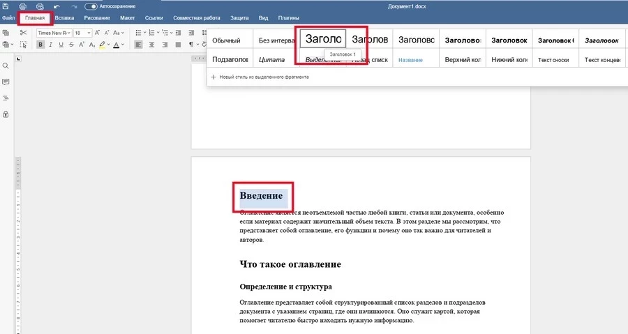 Чтобы начать, убедитесь, что в вашем документе есть основные заголовки и подзаголовки. Пройдитесь по тексту, выделяя заголовки, и во вкладке «Главная» выберите стиль «Заголовок 1». Этот стиль по умолчанию идет третьим в списке стилей. Подзаголовки оформите аналогичным образом, выбрав «Заголовок 2», который находится на четвертой позиции. Если нужно настроить стиль под свои предпочтения, просто щелкните на него правой кнопкой мыши и выберите «Обновить из выделенного фрагмента». Не волнуйтесь — изменения можно легко отменить, выбрав «Восстановить параметры по умолчанию».