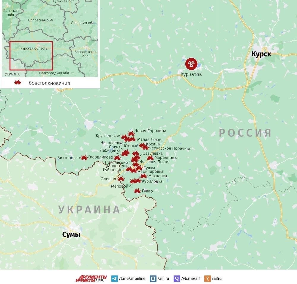 Карта боевых действий в Курской области. Данные на 31 января