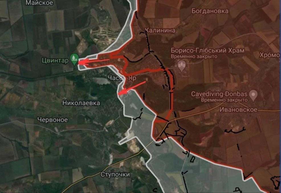 На ЧасовЯрском направлении продолжается штурм Часов Яра с северного и южного флангов.